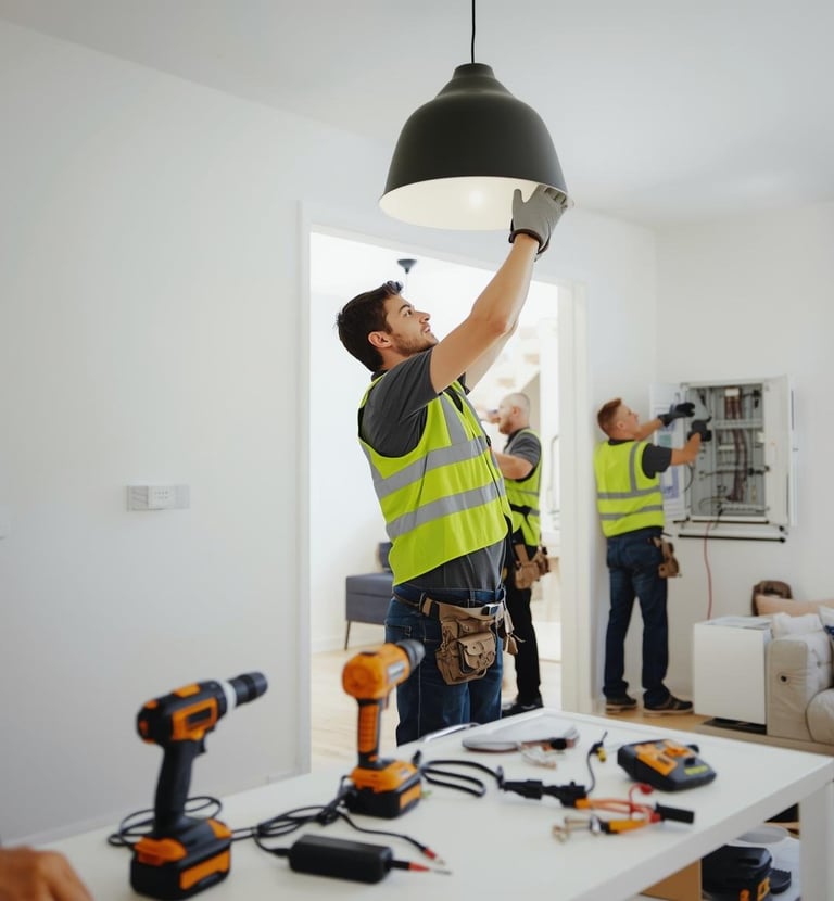 - Instalação de luminárias e ventiladores de teto